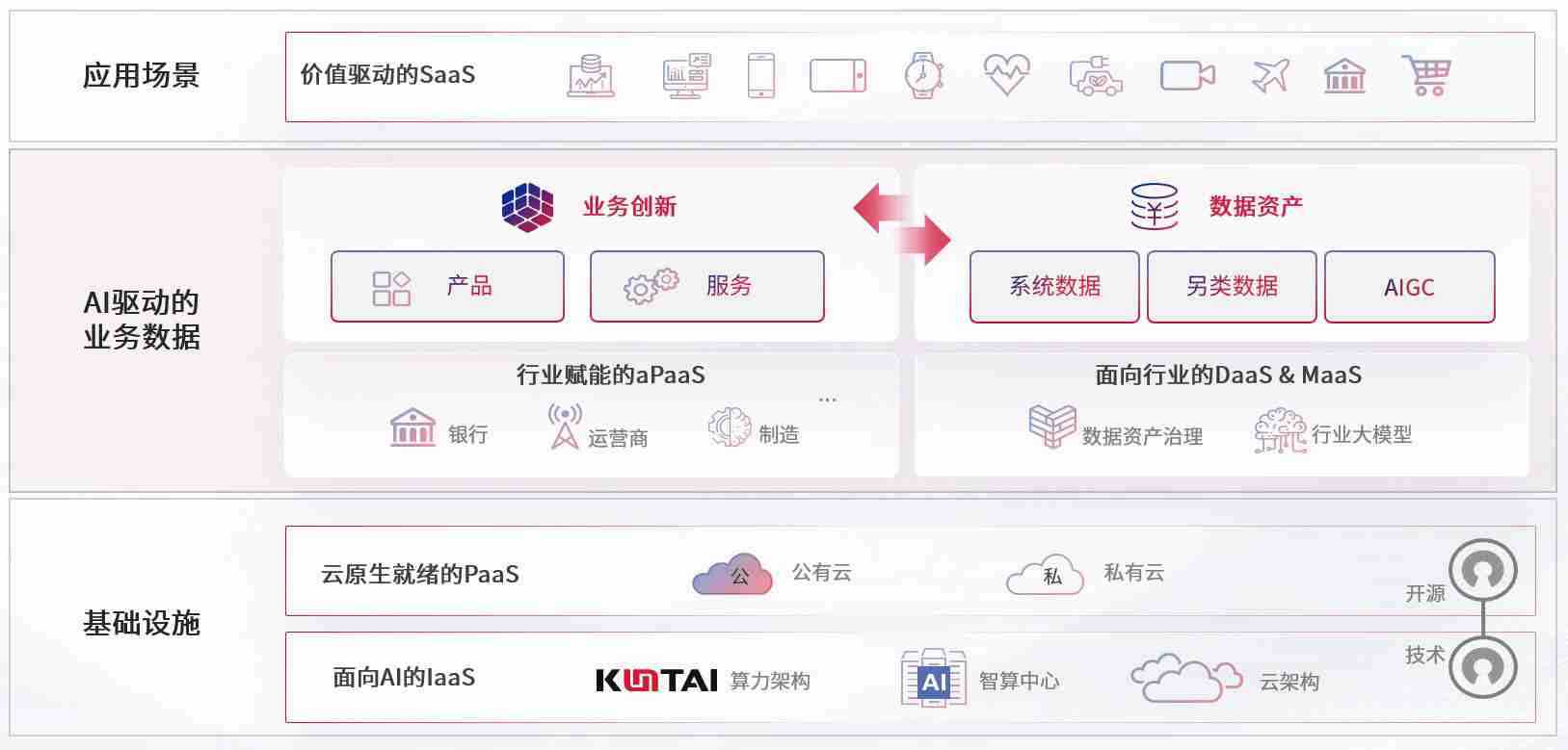 数字时代,,围绕企业数字化转型的关键要素,,JACKPOT数码开创性的提出数云融合战略和技术体系框架,,,着力在云原生、、、、数字原生、、、、AI原生和信创产业上架构产品和服务能力,,,,为处在不同数字化转型阶段的快消零售、、汽车、、金融、、、、医疗、、政企、、教育、、、运营商等行业客户提供泛在的敏捷IT能力和融合的数据驱动能力,,,,构建跨界融合创新的数字业务场景和新业务模式,,,助力企业级客户建立面向未来的核心能力和竞争优势,,全面推动社会的数字化、、、智能化转型升级。。。。